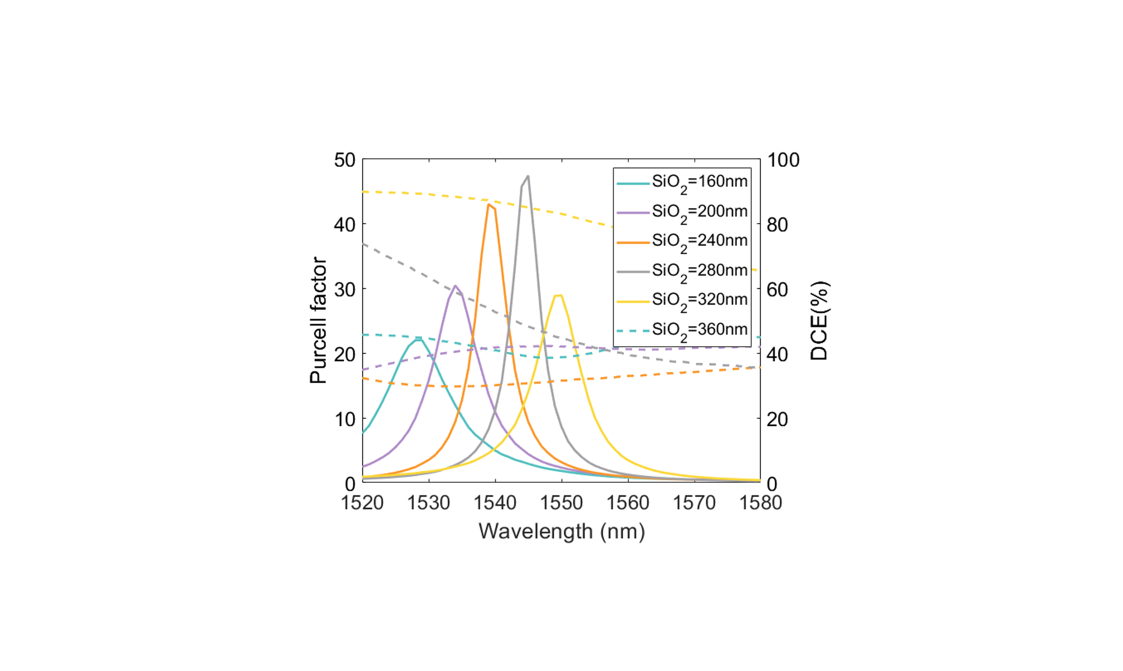 Next, the backside Au mirror can be added to the model and the oxide thickness can be optimized with a simple parametric sweep. Depending on the application, one may choose the value that gives maximum Purcell factor or optimal DCE.