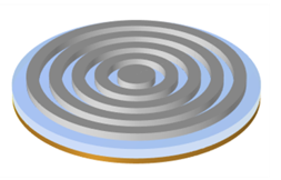 A bullseye resonator consists of a set of periodic concentric trenches etched in a semiconductor slab around a central disk, with QDs grown at half the slab thickness. The refractive index contrast at the trenches causes strong in-plane reflections, leading to a cavity resonance localized in the central disk. Meanwhile, part of the in-plane emission is directed vertically by the concentric rings which meet the second-order Bragg condition.